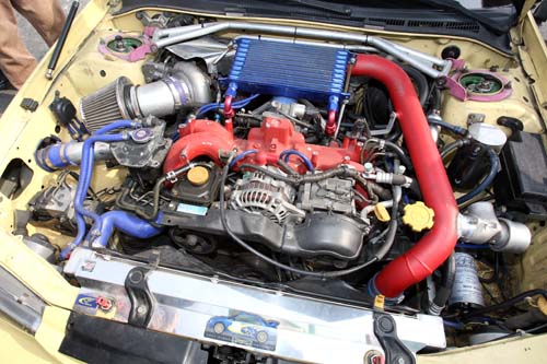 港灣高速的企鵝號引擎部分以STI B25B為基礎,換上CP鍛造活塞與BC強化連桿,曲軸也更換為STI強化部品,上座追加了Cosworth高角度凸輪軸,渦輪方面港灣選用了HKS GT3540的大號渦輪,以EVC V將最大增壓值設定在1.6bar,如此條件馬力有550匹以上,而這具引擎完工至今已經有三年多的時間,企鵝認為已經很夠本了,因此這次採取「不成功便成仁」的方式追加NOS系統,成功了算是幸運,失敗了也沒關係,反正都已經準備要再打造一顆新的引擎…