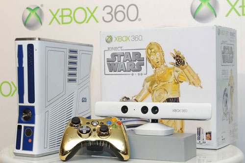 「Kinect Star Wars限量版主機」主機機身是根據經典星際大戰角色設計,主機結合R2D2機器人特殊的藍白塗裝,金色的C-3PO機器人則化身無線控制器,加上有如帝國風暴兵的白色Kinect for Xbox 360感應器,絕對是令全球星戰迷為之瘋狂的夢幻新逸品。