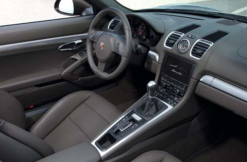 全新設計的內裝空間也帶給駕駛人更為精緻的乘車感受,由於車身尺寸比過去的Boxster放大不少,也因此乘坐空間會比過去變得更為充裕,內裝造型也經過全數重新設計,門板的造型則比照911採用線條較為複雜的新世代造型。中央鞍座的設計同樣採用了上昇式的安排,新一代的Porsche車款包括Cayenne、Panamera與911都採用相似的設計方式,這是設計師對經典車款Carrera GT致敬的方式。原本橢圓型的出風口造型改為接近梯形,中央的兩個出風口甚至結合上方出風口連接成為長條式的設計,首次出現在Boxster車上的Sport Chrono Plus跑車計時套件的儀錶位置則安裝在兩個出風口的中間,造型上更具整體感。