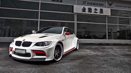 在寬車體的基礎下,這套名為GTRS3的寬體外觀幾乎將M3既有的車身線條作出最大延伸效果,從車頭放眼望去誇張的左右葉子板就像超級肌肉猛男一樣,絲毫無法掩飾最絕妙而原始的力與美組合,不過為了配合向外延伸的寬體造型,全車空力套件從前、後保桿到側裙均全數大幅修改,明顯加寬的前後保桿搭配前後下擾流(可替換)除了更具兇猛氣勢外,有效降低車輛阻力與亂流發生對於高速穩定性有絕對的提升效力。
