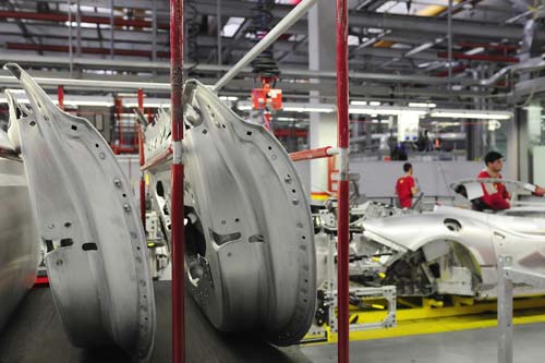 | 為確保車體在組裝過程中不至於產生誤差,品管部門會以專用儀器定時檢驗每部新車的組裝完成度。 |