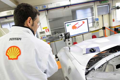 現在負責Ferrari車身製作的工廠Carrozzeria Scaglietti,從馬拉內羅總公司開車只需片刻就可抵達,實際上該廠自1953年便肩負起Ferrari車身的製造工作,許多享有高知名度的經典車款如250 California Spider和250 GTO的車身都出自該廠之手,而Ferrari在1977年完全接管這家工廠後,Scaglietti已轉型成為一家現代化的高科技研究中心和先進的製造基地。雖然Scaglietti長時間以來用精湛技術打造出多款足以媲美藝術品的鋁合金車體,不過Ferrari對輕量化技術的熱情並不僅止於這一家工廠,實際上Ferrari在複合材料領域也有著豐富經驗,這可從Ferrari F1賽車和一系列複合材料製成的「終極」超跑(如聲名大噪的Enzo Ferrari)而得到驗證,其實只要Ferrari願意,他們有能力用最新的碳纖維技術製造任何一部可稱霸公路的超跑。