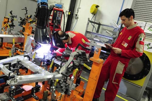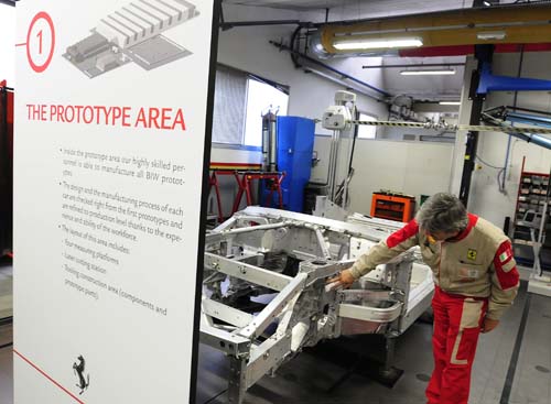 | Carrozzeria Scaglietti工廠為Ferrari研發鋁合金技術的中心,目前已展開下一代V8與V12超跑的車架研發工作。 |