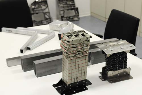 | 形狀相同但採用不同材質與內部結構,最終便會造成顯著的差異化,在能量吸收方面也會有不同的成果展現。 |