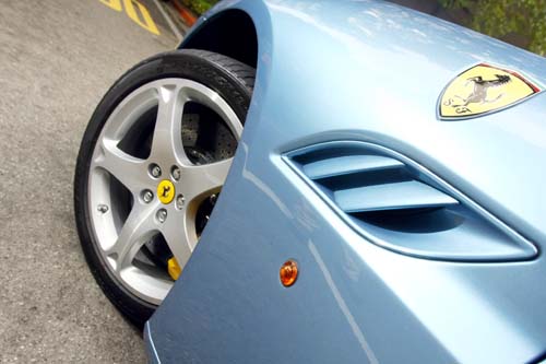 | 試駕的這部California HELE選配了金剛砂拋光鋁圈與失壓續跑胎,葉子板的Ferrari廠徽則為台規版標準配備。 |