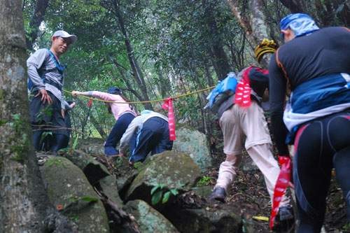 今日去野趣樂部參加跑友來自各行業,豐富趣味的活動內容更吸引5位跑者從台中專程前來參與活動。上午9點課程講解結束後即由專業教練們帶跑內湖五指山列群,10公里的路程所有參與者約在2小時後抵達終點,The North Face台灣代理商星裕國際馬隆政總經理首次挑戰參與山林越野,成功體驗試跑、直讚沿途美景與越野趣味。其他參與者表示,以為只是跑山路,沒想到是實際穿山越野,過程中教練親身指導各項地形克服的技巧,甚至有路段需以繩索攀爬與滑坡,雖然弄得全身髒兮兮,但挑戰自我的成就以及山林不同於都市路跑的美景,紛紛大呼好玩,並想再次參與越野路跑活動。