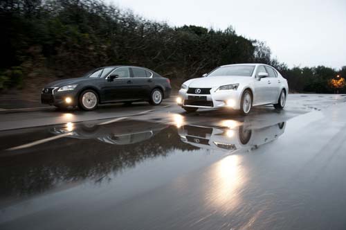 至於採油電混合動力系統的GS450h,乃搭載上一代車型編號2GR-FXE的3.5升6汽油引擎,變速箱則是可模擬六速的E-CVT無段變速系統,並搭配雙電動馬達以及Hybrid Drive的PCU動力控制模組整合油電系統,不過這具引擎則改採燃燒效率更出色的Atkinson式的循環設計,且壓縮比也由11.8:1調昇至13.0:1,達到更為稀薄燃燒的目的。而GS450h在油電雙動力加總下,綜效最大馬力可輸出達338hp/6000rpm、扭力峰值則為35.2kgm/4600rpm,在強勁動力的背書下,0~100km/h僅需5.9秒即可完成,極速則被限制在250km/h的水準。特別值得一提的是,GS450h在換上新版的PCU動力控制模組後,不僅可降低23%的油耗,使平均油耗來到16.9km/L外,CO2排放量也降低至137g/km。