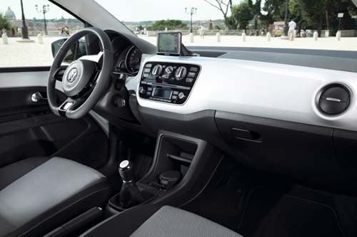 在動力系統方面,VW為Up!準備了兩具輸出不同的1.0升三缸引擎,動力輸出分別為60hp與75hp,動力系統當然採用前置引擎、前輪驅動的設定,標準變速箱為五速手排變速箱,VW也另外提供了五速自排變速箱做為選用配備。Up!的動力設定主打節能、低排污,以BlueMotion Technology版本(加上引擎主動啟閉、剎車電能回收、低摩擦組件與低滾動阻抗輪胎)的數據來看,Up!確實擁有相當精彩的油耗與排污表現,兩種動力版本分別擁有24.4km/L、23.8km/L的油耗表現,而且兩者的二氧化碳排放量都低於100g/km。劉建宏
