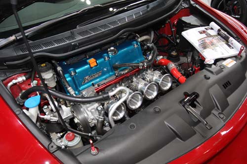 | J’S Racing Civic RR是以無限RR為基礎下去改裝,K24引擎經Toda四喉直噴與自家ECU調校後可發揮308hp/31.5kgm動力輸出,日前曾在筑波做出1分4秒9的最速FD2街車/AD08街胎成績。 |