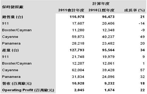 總部位於斯圖嘉特的跑車製造商保時捷日前公佈 2011 年會計年度營收表現。在產品年輕化與產品線擴展之下,保時捷呈現持續穩定的發展當中,努力達成 「Strategy 2018」 集團目標。