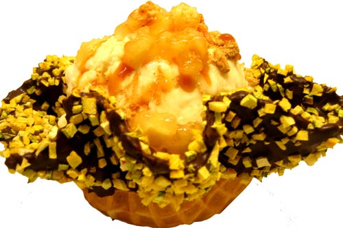 COLD STONE的萬聖節限定「巧克南瓜鬆餅/Jack-O’-Waffle」,沿用萬聖節必備的應景南瓜,採用最精華新鮮的果肉部份,特製成南瓜丁,並搭配最經典的巧克力鬆餅,不論在視覺上或口感上皆符合萬聖節氣氛。另外COLD STONE也推薦二款最適合萬聖節品嚐的經典冰淇淋-酷石蘋果派、就是愛攪和,及一款自創冰淇淋—薄荷黑巧克力冰淇淋加棉花糖,與「巧克南瓜鬆餅/Jack-O’-Waffle」結合,將創造出前所未有的頂級享受。10月19日起至31日期間,凡點購任一客冰淇淋,皆可以30元優惠價搭配「巧克南瓜鬆餅/Jack-O’-Waffle」一份。