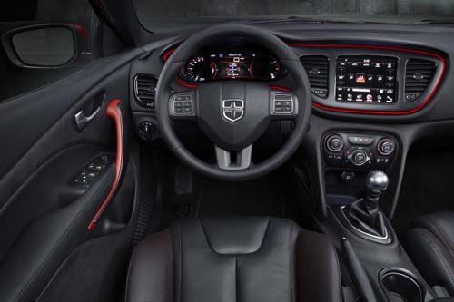 將視線轉到車內,黑色為主、紅色為輔的搭配方式,再加上以多種不同光色組合而成的儀錶板與多功能液晶螢幕,讓Dart很容易就吸引到年輕消費者注目的眼光。當然,想用駕駛樂趣討好消費者,所使用的伎倆可不能只靠純視覺,因為只要一上了車並踩下油門就立見分曉。動力架構方面,Dart同樣充分的運用了Fiat集團資源,採用的三款四缸汽油引擎中有一款來自義大利Fiat。