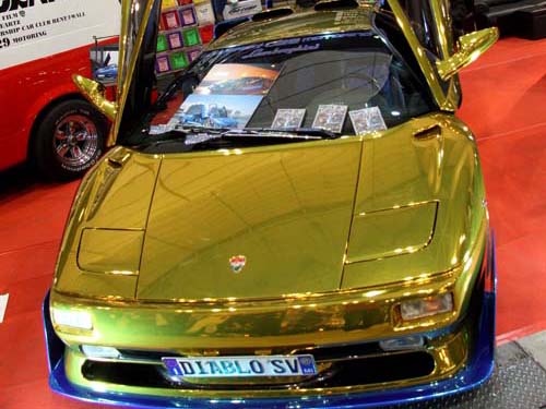 | 鍍金牛閃亮亮/老牛也能賦予新氣息,這輛全身換上鍍金貼膜的Diablo SV不僅更為耀眼奪目,就連輪圈也都採用相同的配色手法,以營造出十足的金光閃閃。 |