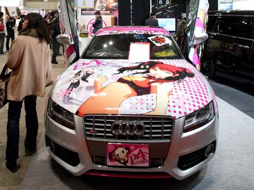 | 痛車銷聲匿跡/去年車展上大舉出現的痛車風潮似乎在今年幾乎就快銷聲匿跡,除了一輛S5與997 GT3廠車之外,對於多數改裝廠而言,這種卡通風格還是回到卡通世界比較合適。 |