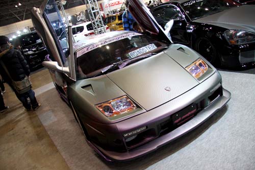 | 粉紅衝出水?閘 今年Tokyo Auto Salon似乎也讓老牛有了新生命,有別於鍍金牛的閃亮風格,這輛以水?裝扮的Diablo就連引擎也換上粉紅風貌,性能之餘也多了些柔性的氣息。 |