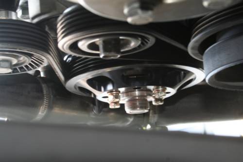 這組由Ruff製造的BMW M50引擎用三件式發電機、水泵浦與動力方向機用的加大直徑Pully,因直徑加大關係,三顆通通比原車附件要來得重少許,這種周邊加速型Underdrive Pully是靠加大直徑來減速,所以最簡單的方法是拿直尺與三角板量出個別Pully直徑與原車比較就知道差異。DIY安裝時先從車底目視確認有無與曲軸Pully在同一平面,然後把內六扳手伸進將張力舵輪壓下後把六溝皮帶裝進去就好了,比較需要技巧安裝的是發電機舵輪,原車所附的彈性墊片千萬別搞丟了,可以一次只換一顆分別量測差異,皮帶也可以交替使用。
