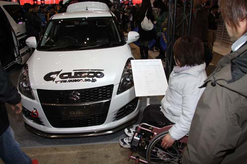 | 為了一覽心目中的改裝盛會,即使坐輪椅也要到現場來朝聖一番。 |