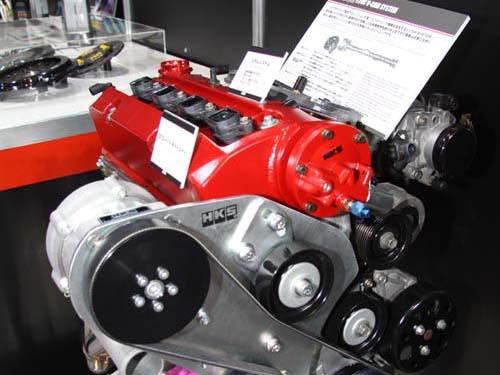 作為日本第一大改裝品牌的HKS,隨著前兩年自家在Fuji賽車場舉辦Prrmium Day而缺席Tokyo Auto Salon後,今年重返總算替日本疲弱的改裝市場注入強心針,這回除了針對Nissan R35與Honda S2000分別推出GT1000 CONCEPT及AP350SCⅡ CONCEPT專用性能套件之外,以往與改裝形成絕緣體的箱型車款居然也有專屬F CON iD,藉由更為細緻的電腦調校以達到節能並提升馬力的功效。然而為了開拓逐漸萎縮的改裝市場,旗下所規劃的新事業部也展開CNG Engine(瓦斯引擎)、輕航機與水上摩托車機械增壓的開發,從渦輪增壓器、觸媒與專用電腦等期盼開拓新的改裝契機。