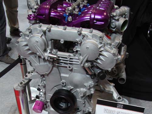 | 全新開發的GT1000特別將VR38擴缸至4.1升,配合鍛造活塞、HKS Step2鍛造連桿、曲軸與渦輪葉片的強化,將最大馬力突破1000hp的限制,目前預計於4月正式販售,另外針對紫色的高流量進氣歧管採用新開發分離式設計以達到進氣效能均衡,目前預計於3月將正式販售。 |