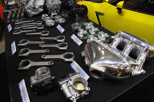 擅長於內燃機精密加工的JUN,今年在車展中除了可以見到針對原廠GT-R引擎本體推出的一系列強化套件,包含進氣歧管、節氣門、凸輪軸、曲軸、活塞、連桿與氣門座,另外為了增加排氣量額外開發的鍛造活塞可對應至4.0升。不過除了常見的日系車款,今年還增加了Ferrari 360 Modena的強化套件,從汽門彈簧、鍛造活塞、凸輪軸與引擎本體拋光加工,雖然並非為Ferrari的現役車款,但正式跨界足歐系超跑的企圖心或許爾後將會有更多車型選擇。