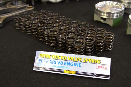 | 針對歐系超跑Ferrari 360 Modena所開發的強化套件可說是JUN今年的特點,藉由汽門彈簧、鍛造活塞、凸輪軸與引擎本體拋光加工以正式跨足歐系領域。 |