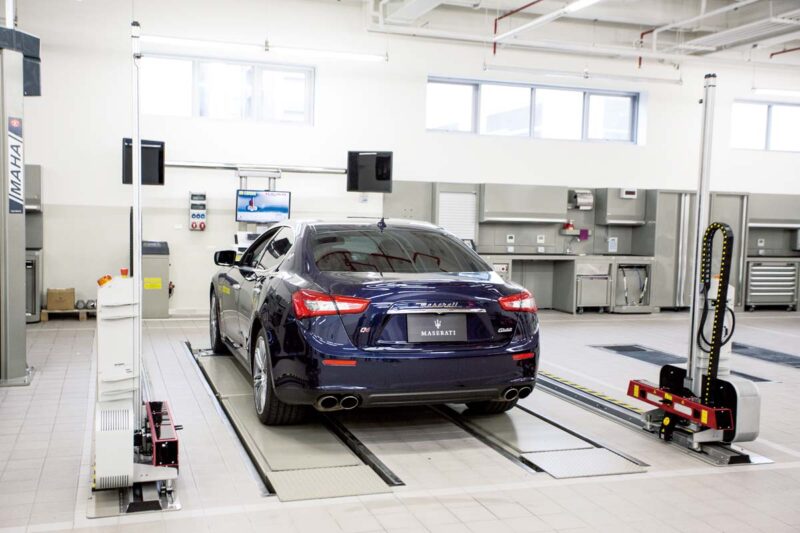 我們在日前參訪Maserati內湖展間開幕活動時,發現維修中心導入相當厲害的Corghi四輪定位機,為什麼厲害呢?是因為它可以在完全不碰觸車輛輪圈情況下完成四輪定位角度檢測。車輛在行駛一段時