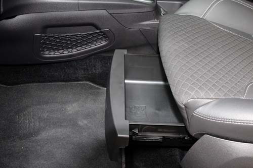 | 於副駕駛座下方配置小型置物空間,能放置包包及筆電等用品。 |