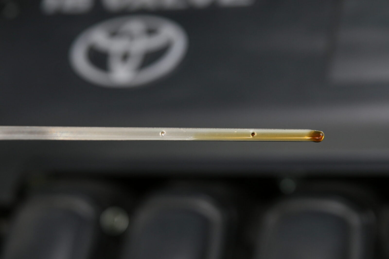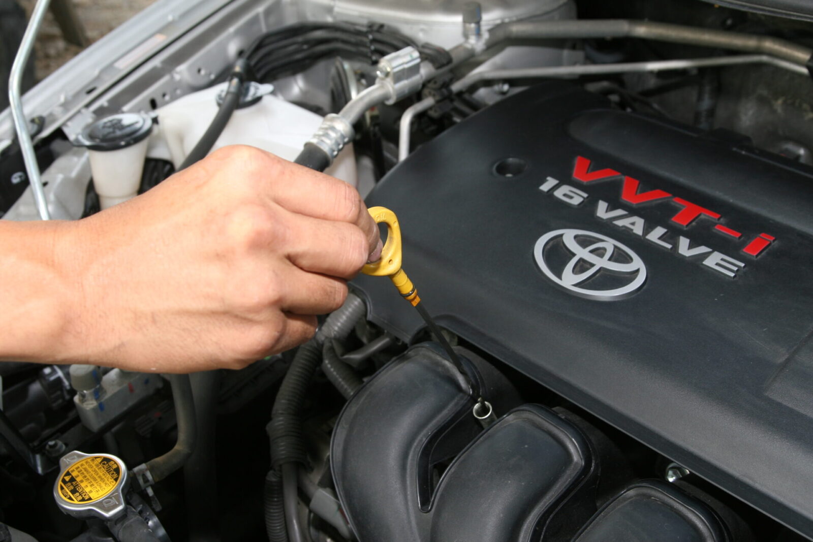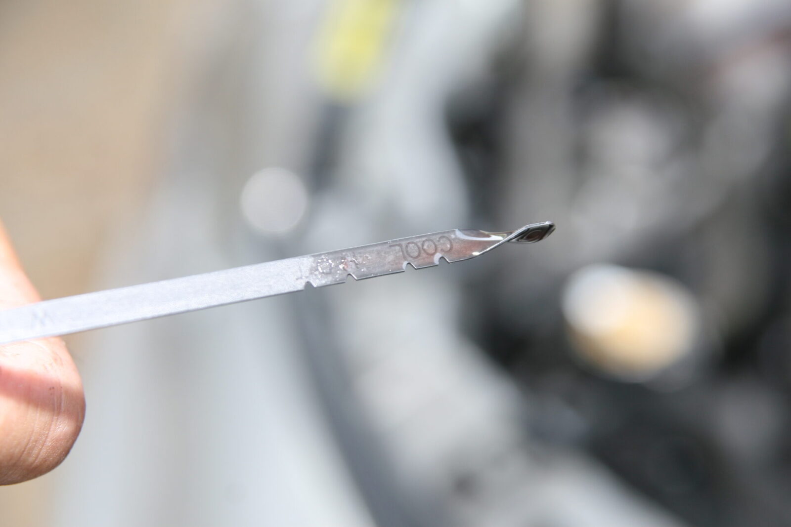機油的檢查是利用機油尺來進行,操作方法很簡單,先將引擎發動病態速大約20秒後,之後熄火並將位於引擎本體旁的機油尺拔出(機油尺大多為黃色拉環),用衛生紙擦拭乾淨後再插入油尺管內到底,拔出後檢查油尺向下並檢查其上的高低標,便可知道油底殼內的機油是否足量,萬一油量不足需添加時,大家可依照油尺高低標間的高度,正好代表一公升油量的比例,來作為添加油量多寡的參考,如果是冷車時檢查,建議油量在油尺的中間位置即可。