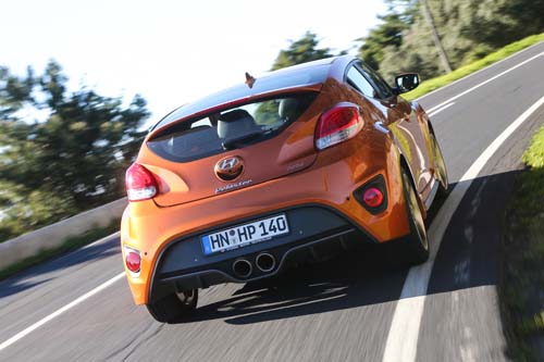 Hyundai Veloster Turbo是現代汽車首款運用Gamma 1.6升Turbo GDI(T-GDI)渦輪直噴汽油引擎的市售車款,其渦輪增壓器為高壓、雙渦流的設計,排氣歧管更與渦輪增壓器整合,另外並搭配intercooler、雙CVVT連續可變汽門正時、與抗阻低摩擦的正時鍊條等,讓Veloster Turbo擁有186hp最大馬力,其27.0kgm的峰值扭力,更能在極低的1500rpm即釋出,並延續至4500rpm,性能相當出色。Veloster Turbo搭載附方向盤換檔撥片的六速手自排變速箱,與1.6 T-GDI渦輪直噴汽油引擎搭配下,其0~100km/h加速衝刺能在8.1秒完成,60~100km/h的再加速表現則為4.5秒,極速更上探214km/h。另外,Veloster Turbo全車系標配全景天窗、7吋LCD觸控螢幕,搭配7.1聲道揚聲器,造就完美音場效果。Veloster Turbo更有著一般小型酷跑所沒有的空間表現,例如後座可以確實乘坐兩名成人,讓此部酷跑兼具Coupe Like的外型以及四門房車的便利性。