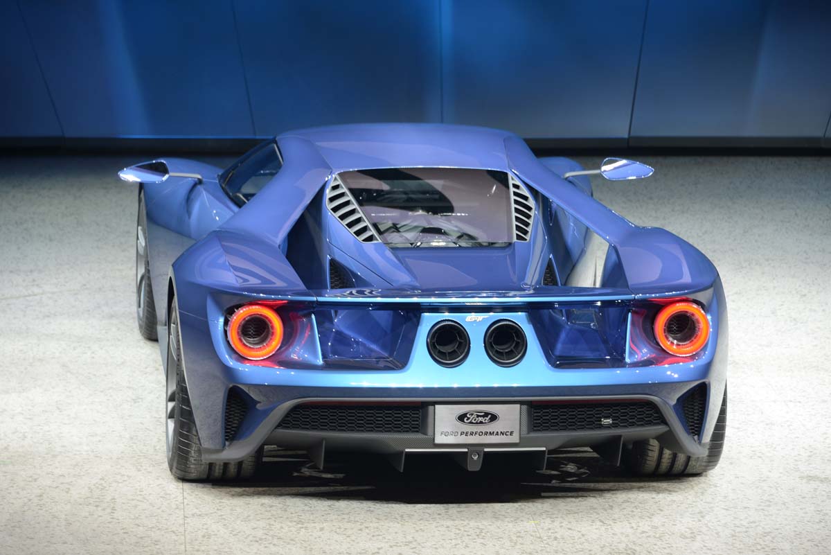 | 全新Ford GT延續雙圓尾燈設計,不過排氣管已從保桿上移引擎後方,相當有競技廠車的味道。 |