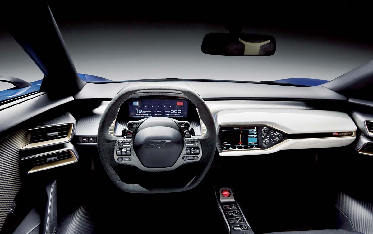 | 雙輻方向盤附有非常多功能,儀錶板也完全數位化,駕駛Ford GT跟駕駛太空船差不多吧! |