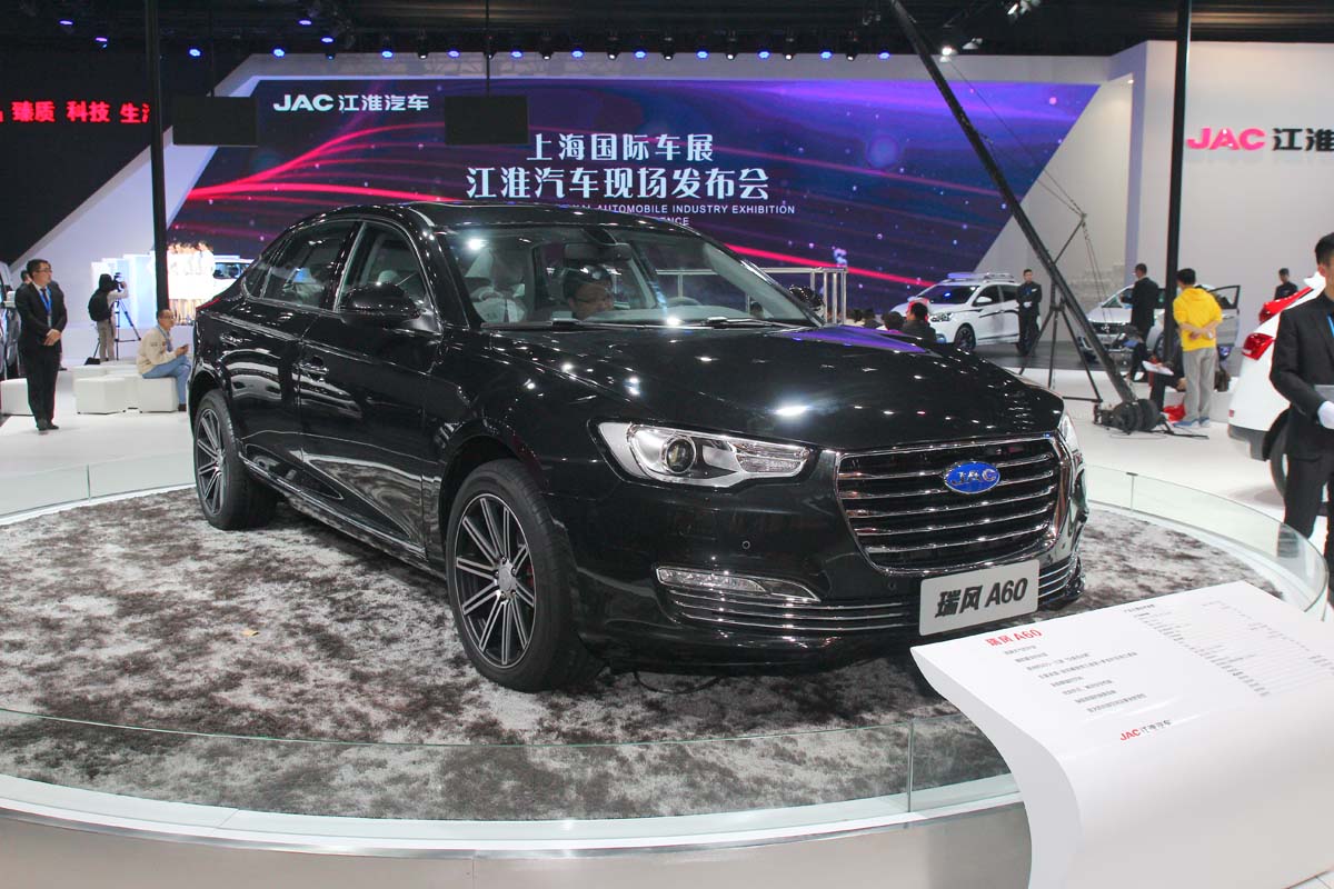 遠遠看我們誤以為Audi將A6擺錯展區,但稍微再走近20公尺卻愈看愈不對勁,經典的四環廠徽不見了,映入眼簾的卻是相當陌生的JAC藍色廠徽。江淮汽車所推的瑞風品牌這幾年不論是SUV或者是MPV車款都開始走向較為運動性且年輕化的設計走向,此次更將先前公佈過的A6中大型房車更名為江淮瑞風A60,但車頭造型明顯仿效Audi現階段房車的設計主軸,車尾則有著BMW 5 Series的風格,堪稱是江淮汽車旗下仿得最兇的車款。