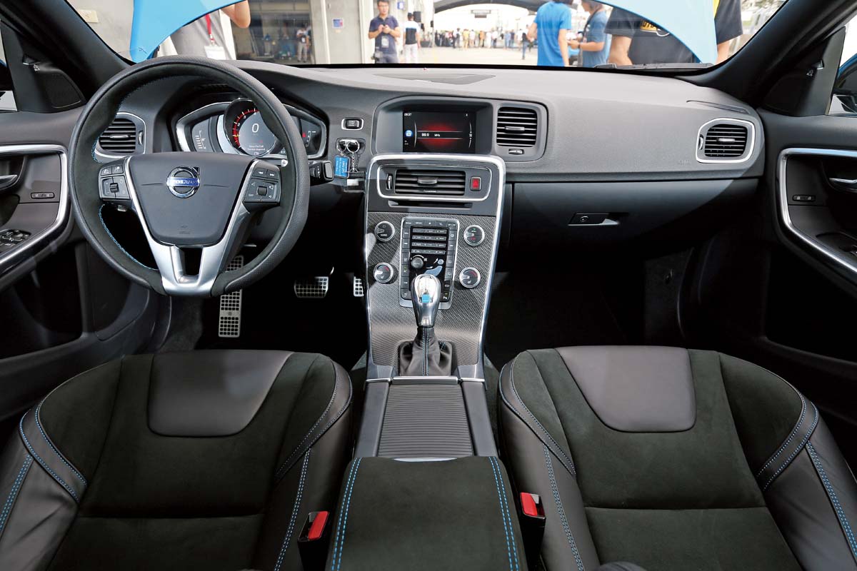 V60 Polestar外觀和一般版本的V60相比顯得格外出眾,用了非常多的性能套件呈現霸氣的一面,坐進駕駛艙反而給人一種冷冽、相對沉穩的感受,在基礎內裝架構不變的情況下,V60 Polestar將車內縫線改為代表極光的藍色,中控檯飾板也換成碳纖維材質,再加上專屬的Nubuck皮革方向盤、跑車踏板、Polestar標誌的排檔桿頭,都能看出它的與眾不同,但又不至於太過張狂,仍在Volvo慣有的沉穩質感與性能味中找到平衡。