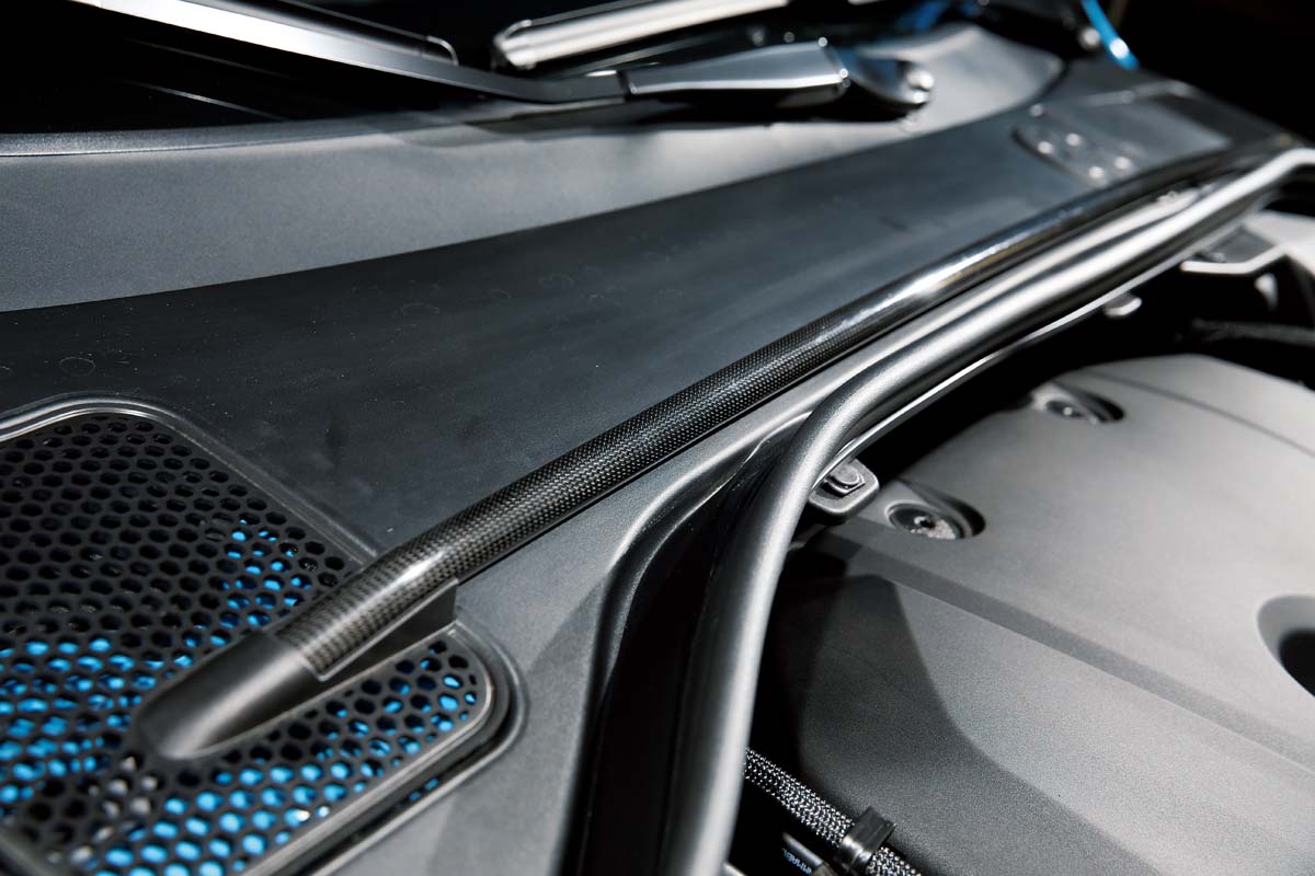 | V60 Polestar引擎室拉桿採用碳纖維材質,對於車身穩定性有著不小的幫助。 |