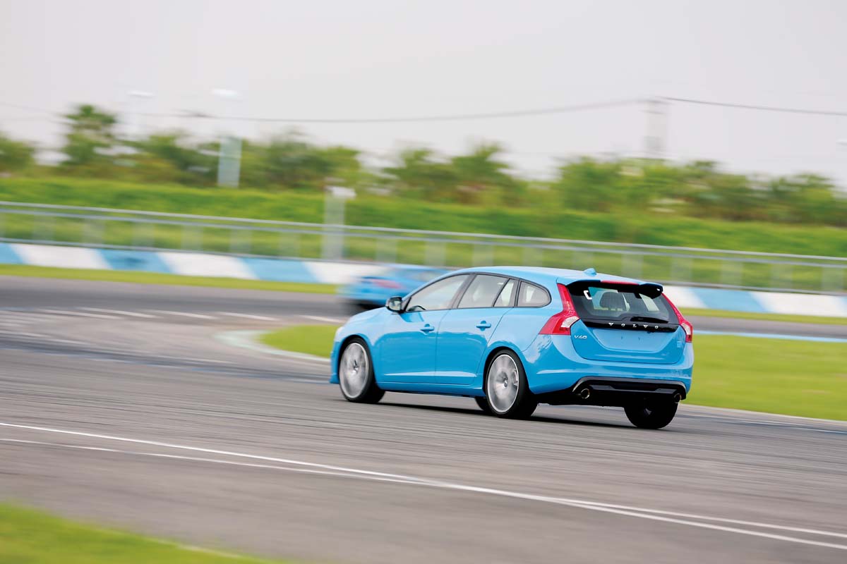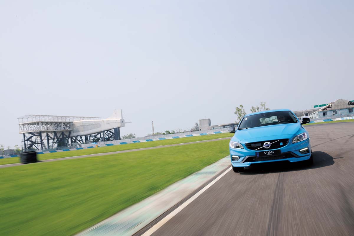 駛出PIT之後車隊速度開始加快,筆者也不假思索將油門一次到底,V60 Polestar引擎拉轉速度相當迅速,襲來的貼背感伴隨著兇猛的引擎嘶吼聲浪,都讓人瞳孔放大、專注於如何駕馭這部瑞典猛獸。在Sport Plus+模式下變速箱換檔延遲許多,但換檔速度卻是飛快,無論升降檔都有強烈的回火聲環伺,駕駛Wagon其聲響更是悅耳動聽。
