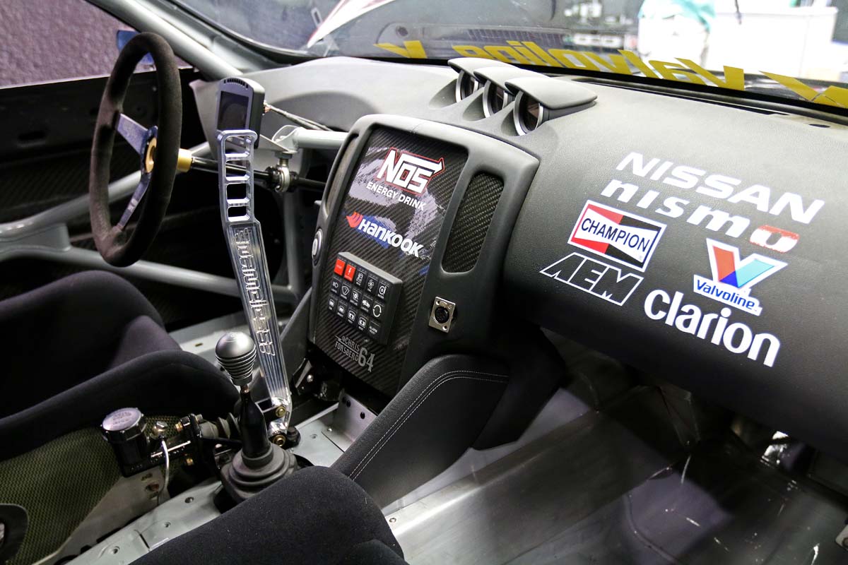 | 內裝除了拆空施以防滾架強化外,基本還是看得出來是台370Z,而一般常見的序列變速箱則是沒有出現在此,維持原廠6速搭配4.3加大終傳而已。 |