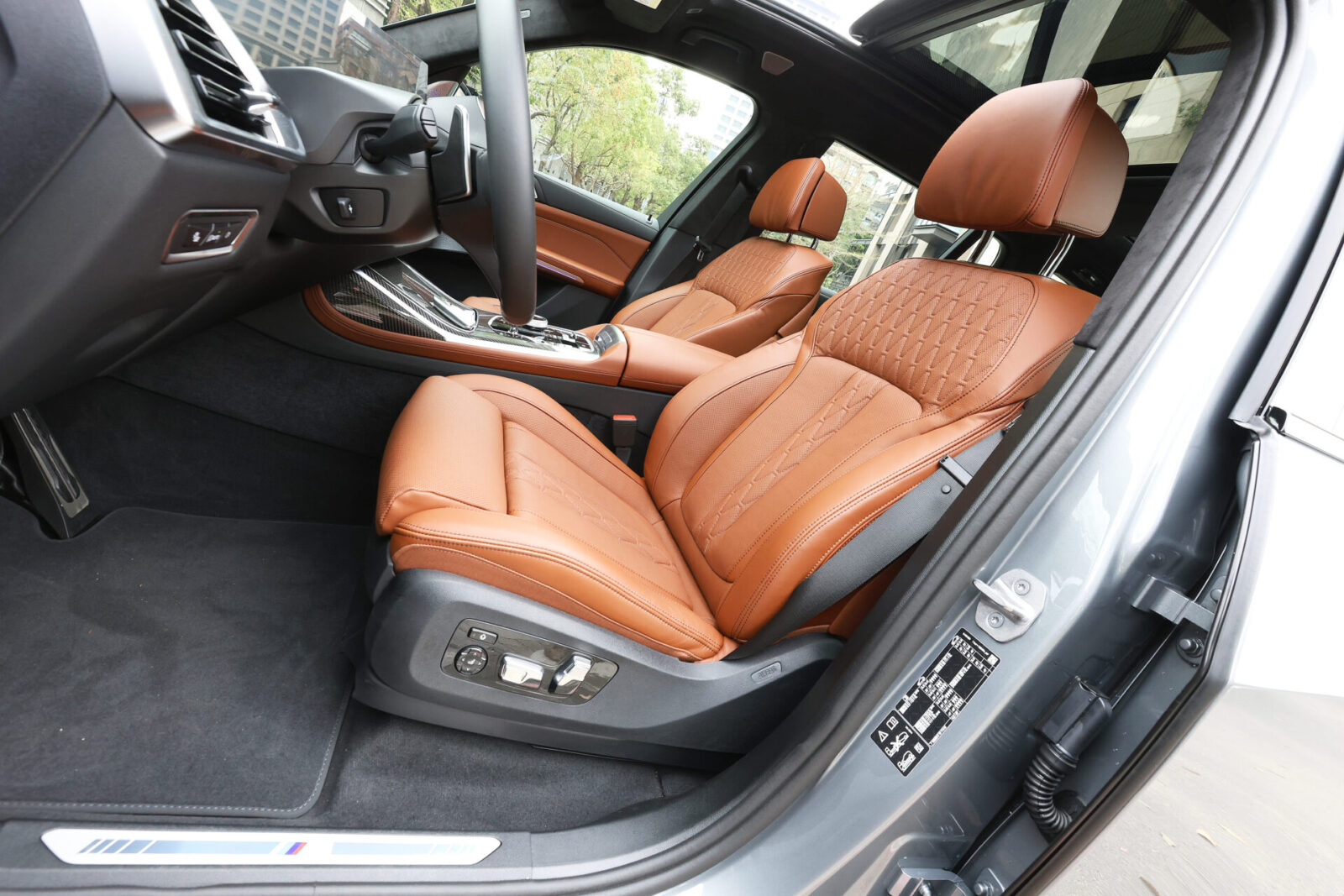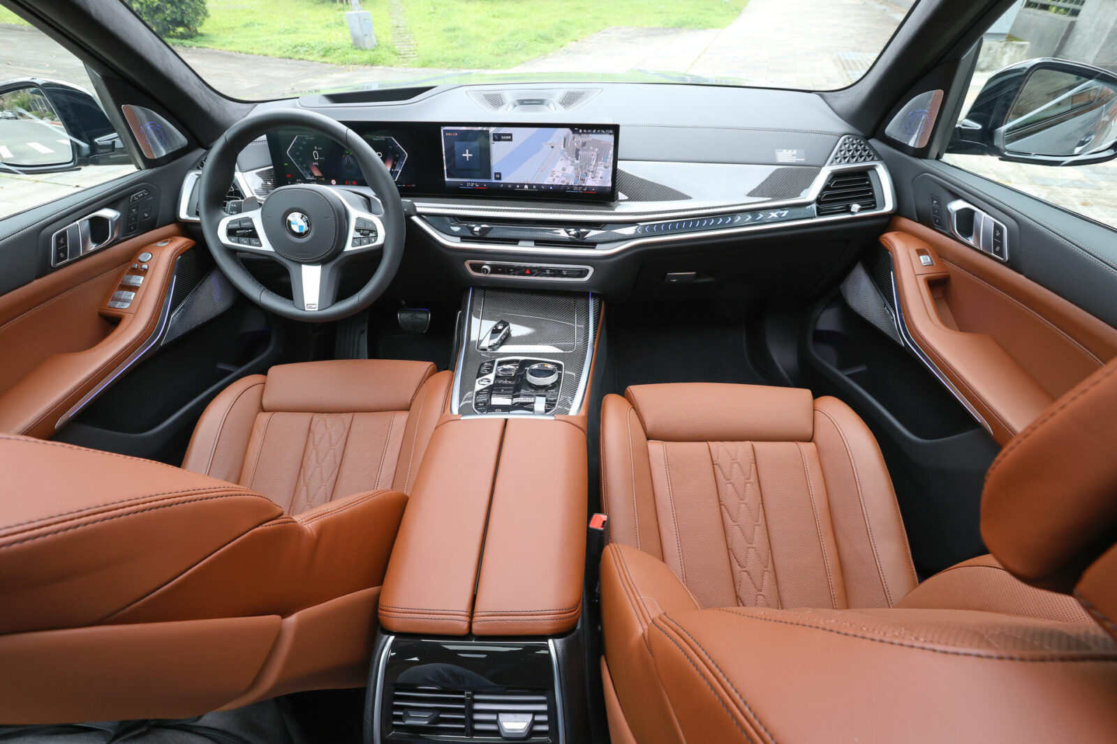 來到車室部分,特仕車首先採用M多功能真皮方向盤搭配控檯與中央鞍座等處的大面積M碳纖維飾板呼應跑格外觀,亦同步升級BMW Individual Alcantara麂皮黑色車內頂篷,以及可隨著車室氛圍燈轉換多種渲染光色的Sky Lounge全景式電動玻璃天窗,無論觸覺或視覺質感都更上層樓。值得一提的是,配合品牌數位科技的快速升級步調,新年式X7全車系皆已搭載BMW OS 8.5作業系統,整體畫面呈現與使用體驗都較原本的8.0系統更加簡潔好上手,此外也具備AR擴增實境導航、遠端引擎啟動、手機數位鑰匙2.0、記憶範圍增加至200m的自動倒車輔助系統,以及最多10組記憶的記憶路徑停車輔助系統等功能,科技便利程度絕對令人滿意。