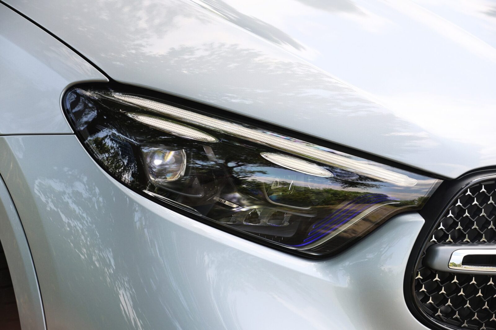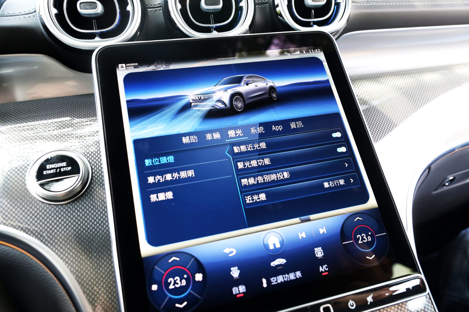 首先在外觀部分,新年式GLC 300 4Matic Coupe在修長優雅的斜背跑旅輪廓基礎之上,維持標配AMG Line外觀套件,採用專屬造型的前後保桿搭配車身同色輪拱處理,增添運動跑格之餘也不失俐落時尚的都會精緻氣息。此外,C 300(包含Sedan與Estate)與GLC 300(包含SUV與Coupe)以上車型,皆全面升級搭載三芒星著名科技配備之一的Digital Light多光束智慧型數位頭燈,除了外觀上便可直接看到銳利有神的投射式燈組之外,更能根據車速及前方路況自動啟閉Ultra Range遠光燈功能,提供超遠距的照明範圍並自動避免造成對向來車眩光,同時還能透過130萬個微小鏡面,創造出260萬畫素解析度的投影畫面,在解鎖或上鎖車輛時投射如流星雨般的動畫等專屬迎賓燈光效果。