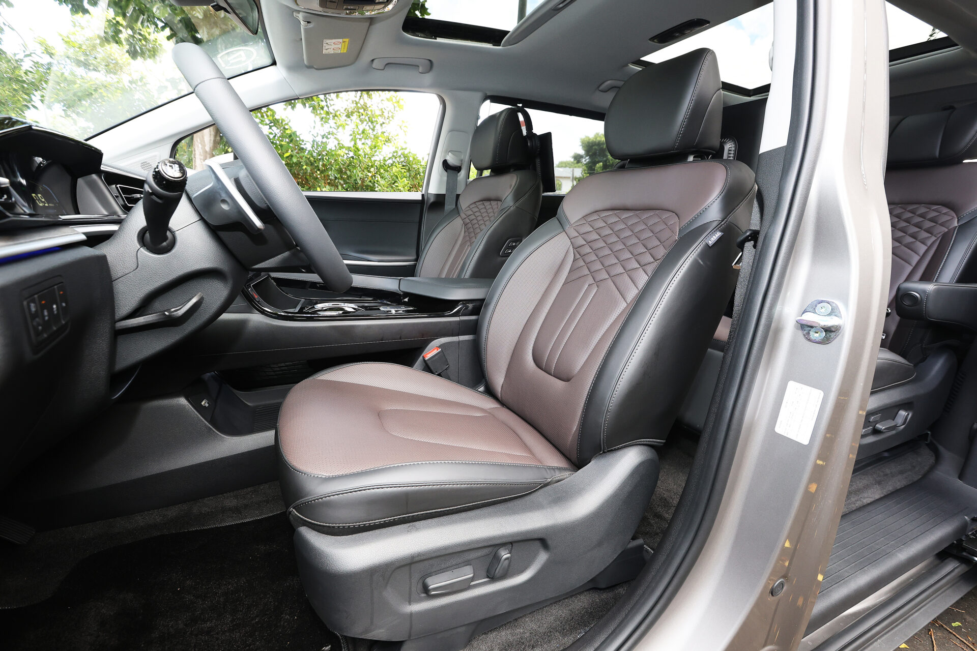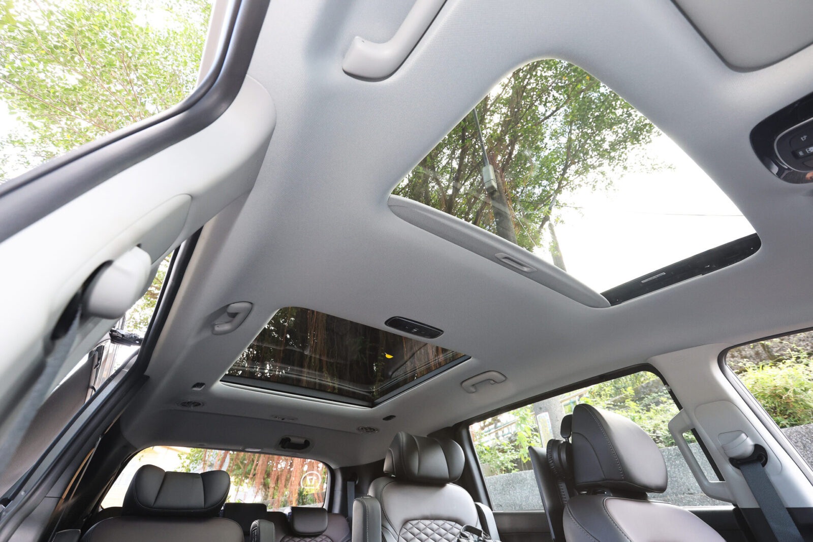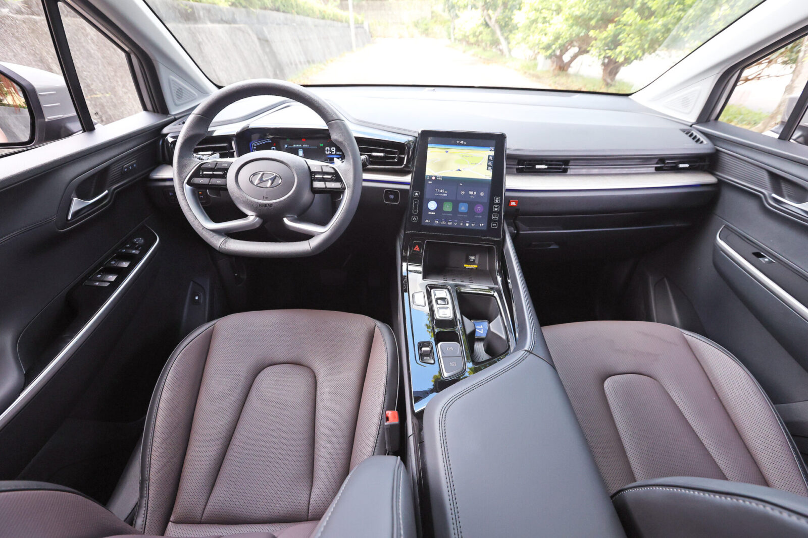 內裝部分也採與1.5T車型相同的鋪陳格局,全數位化儀錶、10.4吋觸控多媒體螢幕以及SBW線傳按鈕式排檔系統等皆依舊,不同之處則是原黑色皮質座椅升級成專屬睿棕黑雙色皮質座椅,為車艙帶來更出色的質感氛圍。配備部分,2.0T車型同樣以大滿配規格來呈現,除Level 2的Hyundai SmartSense安全科技之外,GLT-C車型即標配有10.4吋整合式多媒體系統、衛星導航、SVM環景影像輔助、Smart Key/Push Start、恆溫空調、雙前座電動調整、感應式電動側滑門(雙側)、駕駛座記憶功能、第一排座椅加熱/通風功能、第二排VIP皇家座椅(加熱/通風/多模式電動調整/電動腿靠)、感應式電動尾門以及JBL數位音響系統等;而頂規GLT-D車型則再增加第二排側遮陽簾以及豪華雙天窗等配備。此外,後排更可選配雙13吋影音螢幕與雙無線耳機,打造專屬的尊榮娛樂空間。