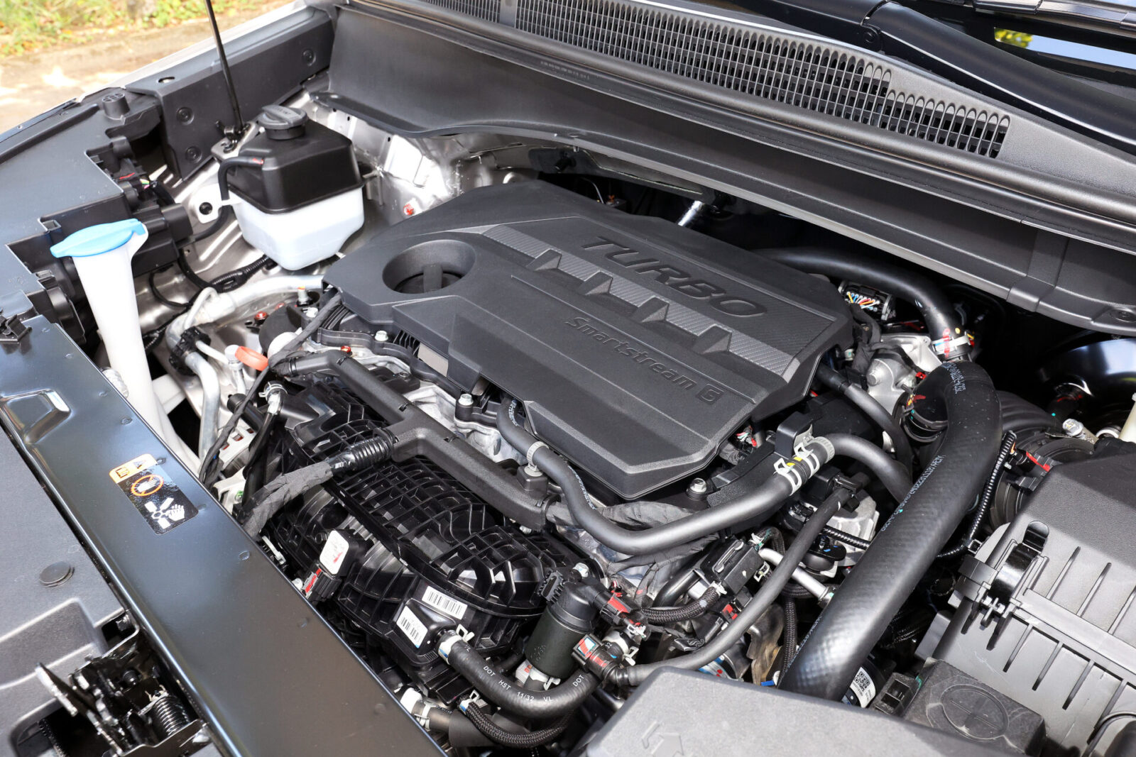 動力部分則是搭載一具2.0升GDI直列四缸渦輪增壓引擎,並搭配8速自排變速箱,擁有236hp、36.0kgm最大馬力及扭力輸出。此外,也具備了包含Smart/Eco/Comfor/Sport等駕駛模式供切換。實際上路催踩油門後,即可明顯感受到較1.5T引擎更為帶勁的加速力道,尤其在1500rpm時即擁有峰值扭力的湧現,輕快豐沛的加速反應,讓車輛即便在滿載的情況下,亦能在市區及快速道路上從容奔馳,甚至在上坡路段超車也更顯輕鬆明快,絲毫沒有任何重拖感。只不過在大腳油門後,自排變速箱的換檔反應略顯遲滯,而影響到動力輸出的順暢性,但所幸透過換檔撥片的使用以及Sport模式的切換,讓整個油門反應變得更為積極靈敏,來獲得更為線性且強勁的加速動力,而這般較1.5T引擎更為飽滿充沛的動力表現,對於時常有多人乘載或載物需求的車主來說,確實是一個更為適切的動力配置。