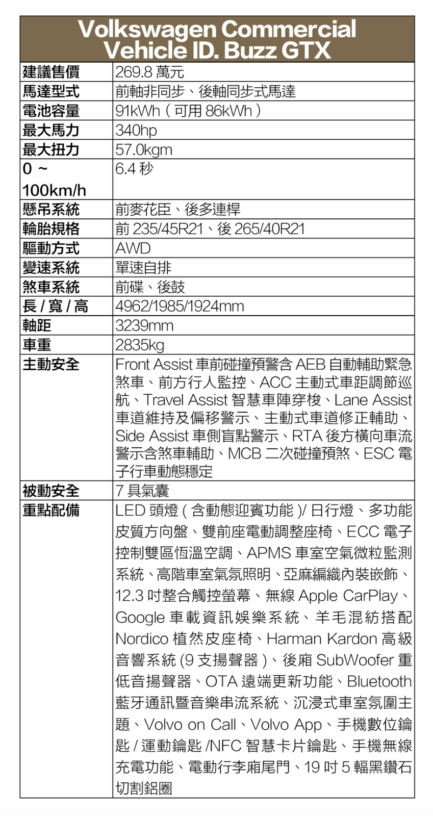 福斯商旅旗下車款向來以寬敞車室空間與強大載運能力等訴求著稱,包括去年底登台的首款七人純電休旅ID. Buzz也不例外,不過在邁向電氣化新時代之際,原廠顯然並不滿足於原有的實用定位,更進一步推出採用雙馬達四驅設定、擁有Bulli車系史上最強悍340hp馬力的ID. Buzz GTX純電跑旅車型,展現令人驚喜連連的性能新風貌……