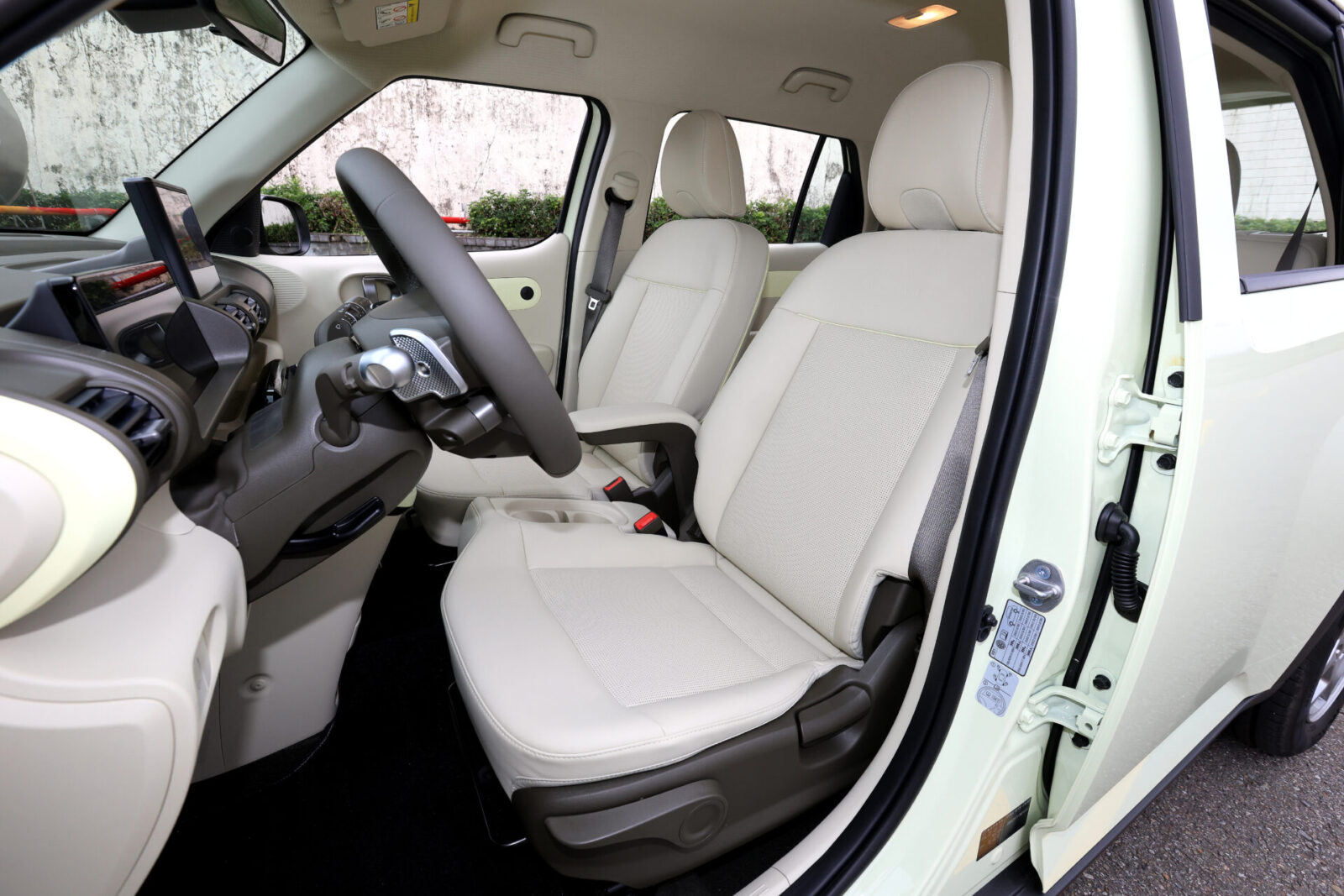 首先從前座來看,由於駕駛座與右側的置杯架採一體式的設計,因此雙前座看起來是連在一塊兒的(實際上雙前座椅還是可以手動分開調整);其次,由於是採中島式鞍部設計,因此形成貫通式的前車艙,讓駕駛或副手座乘客都可改從另一邊上下車,相當便利實用。至於前車艙拜車高所賜,視野與頭部空間感都相當開闊,加上座椅的支撐與包覆性都不錯,坐起來的感受試頗為舒適的。至於汲取K-Car精神的後座,是採兩張5/5分離的座椅設計,也就是說Inster的後座為兩人限定。而除了EV400-A入門車型之外,其餘兩等級車型的後座椅皆具備前後滑移(16公分)與椅背斜度調整(可達28度)功能,藉此創造出超彈性且靈活的空間運用機能。但較可惜的是後座並未有扶手、置杯架與出風口設置,僅有一組Type C充電孔。