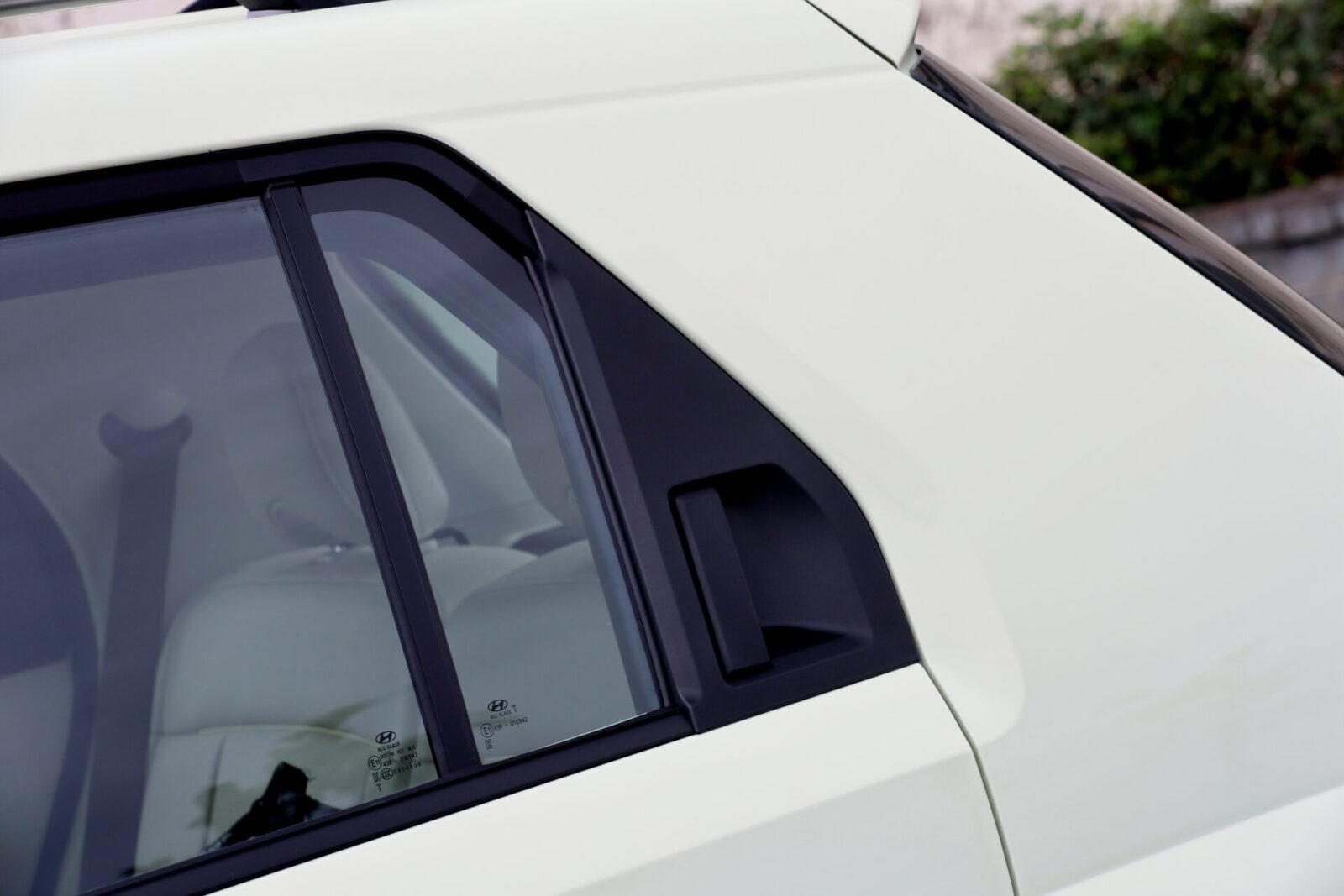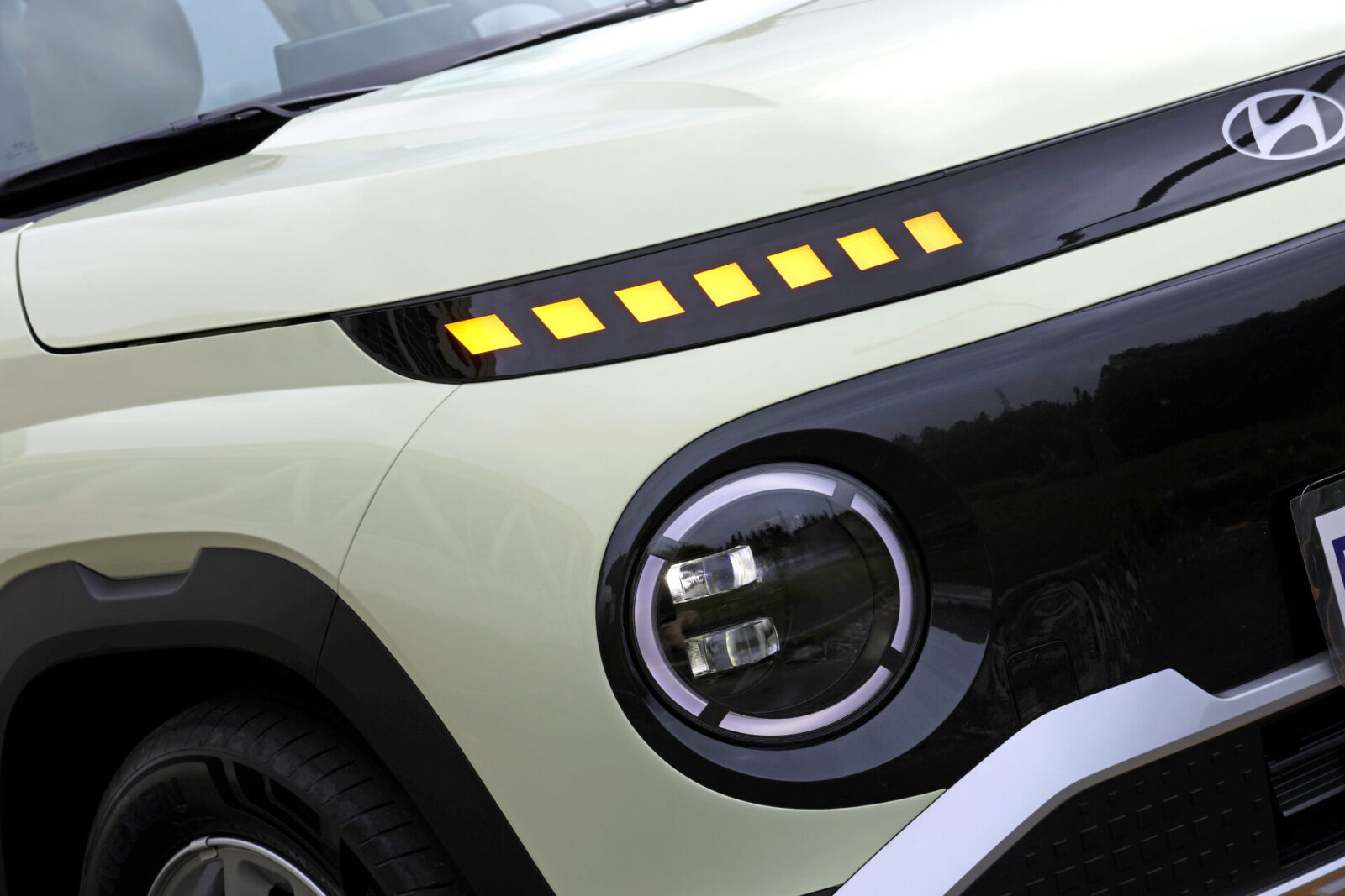 第一眼看到Inster的實車,很難不被那設計感十足的造型所吸引,它不僅靈巧可愛,整個外觀更融合了古典與未來科技氛圍的時髦感。的確,Inster延續了IONIQ家族的未來設計語彙,其中最具代表性的核心元素莫過於「Pixels像素」,諸如車頭前蓋下緣的細長黑色飾板融入了Pixels像素方格的LED方向燈,而下方的投射式LED頭燈則隱藏在Pixels LED日行光環中,再搭配以黑色鋼琴烤漆處理的Pixels造型護罩飾板,以及黑色下氣壩與霧銀梯形保桿框飾,為整張可愛復古的臉龐再添一份濃厚的科技潮流氣息。