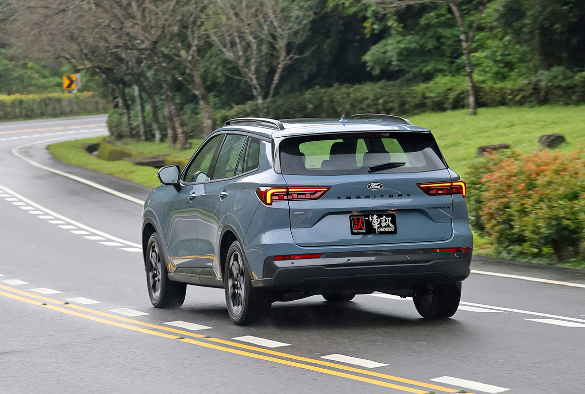 這次原廠對於Territory並未特別強調其「操控」、「運動」性格上的表現,而是著重在家庭買家所重視的「舒適性」與「空間感」上。的確,Territory不僅乘適性好,不平路面與坑洞的處理能力也佳,但其整個操控特性確實已與大家熟悉的Kuga有所不同,簡單來說其底盤懸吊等設定已朝「家庭用」走向,即便其轉向輔助提供了標準、舒適以及運動模式,甚且煞車系統也具備標準與舒適模式供選擇,但行程偏長且舒適導向的懸吊設定,讓車輛在進出彎道時的車身重量轉移與側傾現象相對明顯,得適時地掌握車輛的操駕極限,才能順暢安穩於山路彎道疾馳,總之就是少了以往高速殺彎的先天條件,而轉變成為一部訴求平穩舒適的家用休旅車。不過這般的調性轉變沒有所謂對或錯,只要能符合用車者的需求就行,更何況Territory只是在操控與舒適天平兩端中,偏向舒適走了一步而已,其操控功力與水準還是不錯的。