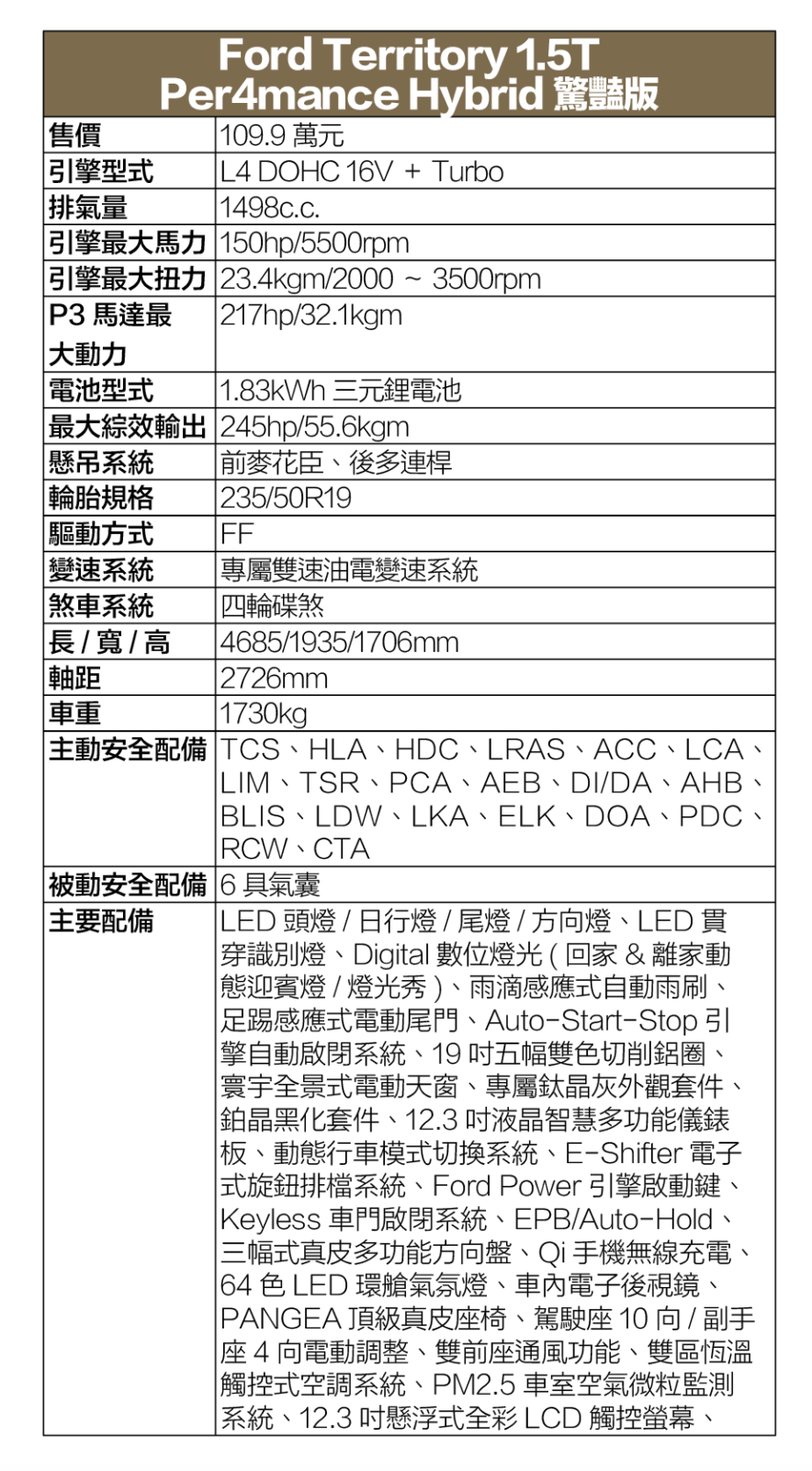 Ford Territory 1.5T Per4mance Hybrid驚豔版