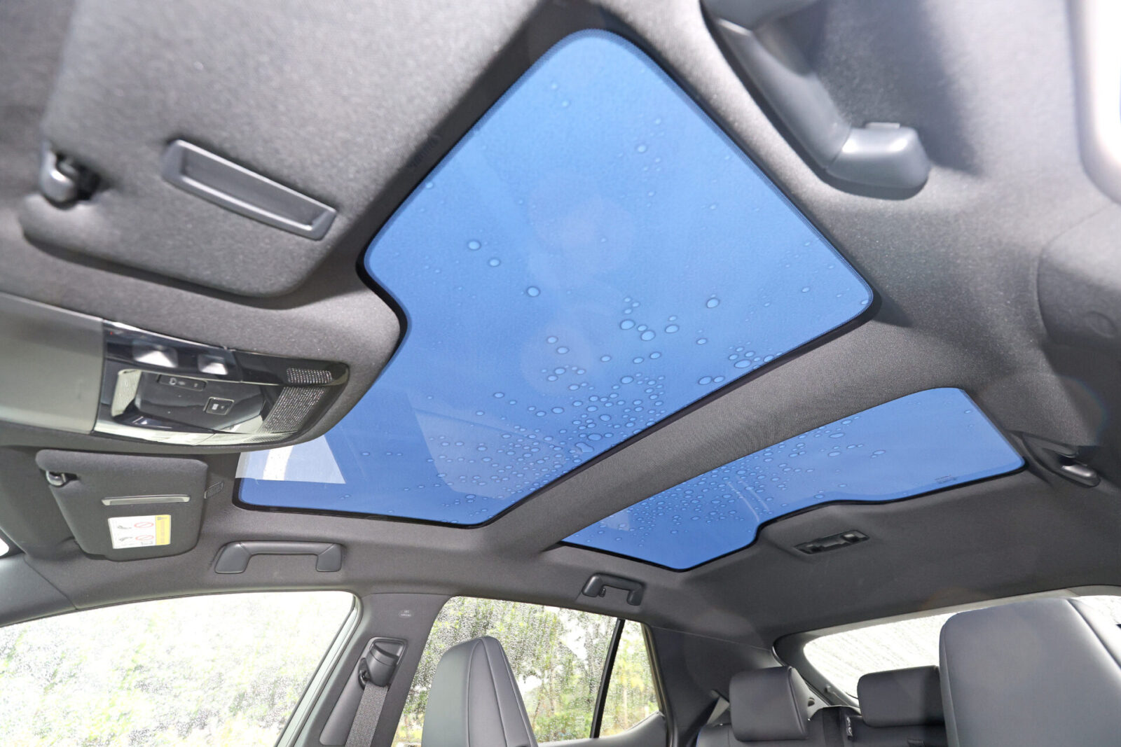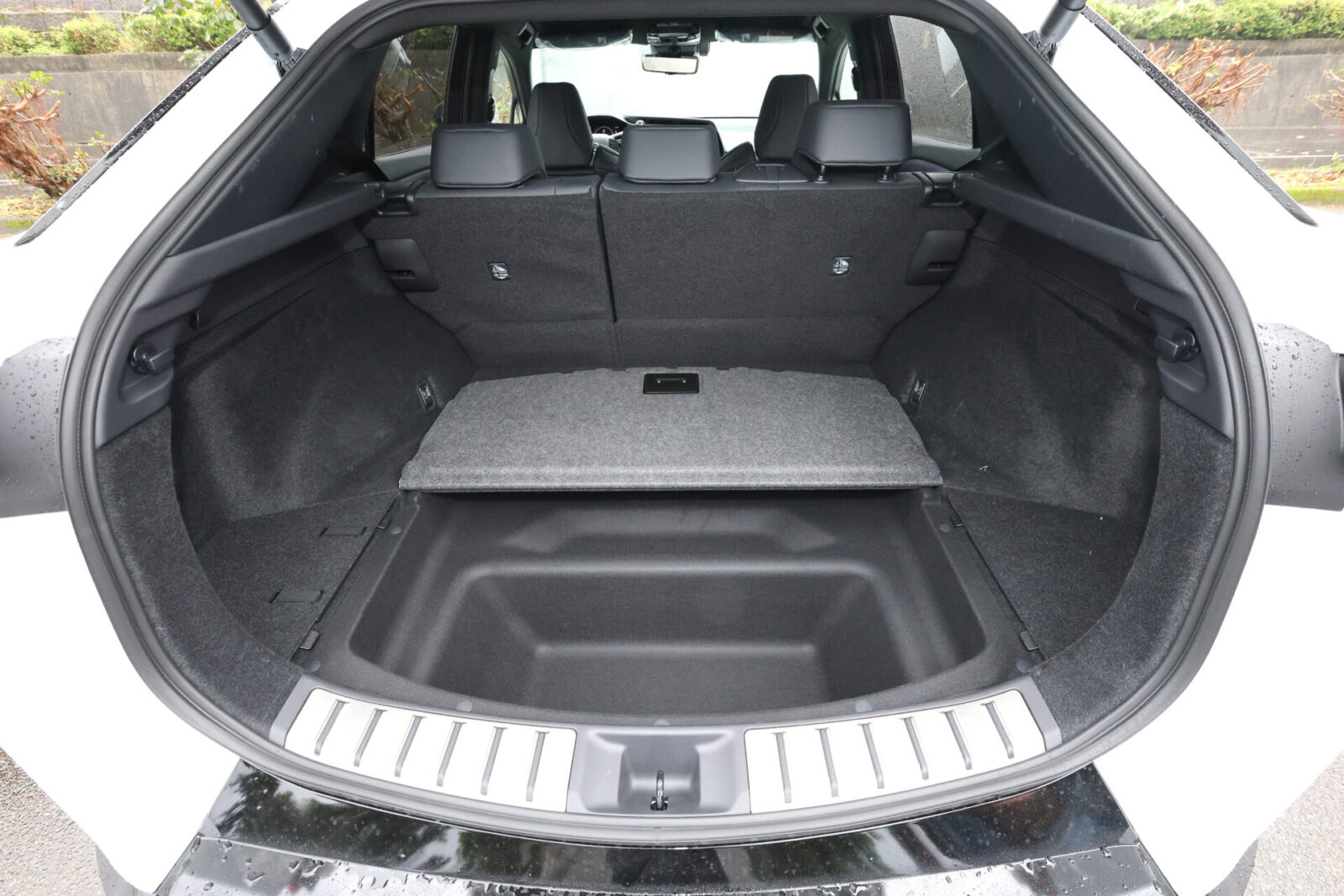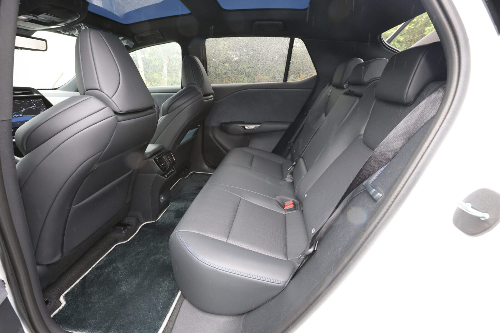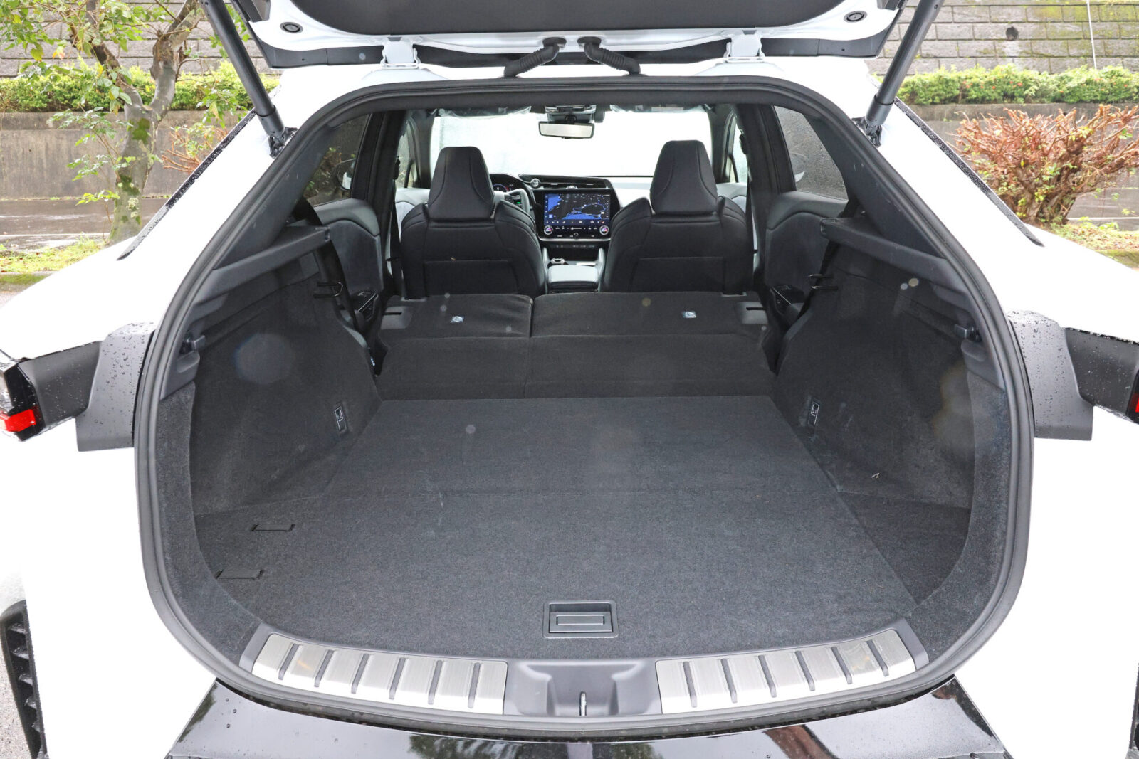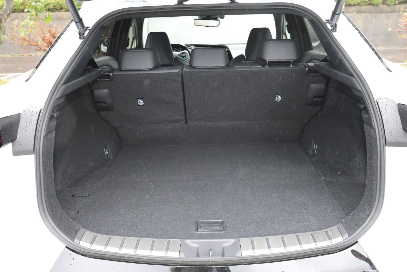 RZ 550e F Sport的車長與軸距已來到4805mm與2850mm,因此整個車室乘載空間可說表現相當出色。從雙前座說起,不僅坐起來舒適服貼,在8向電動調整與通風/加熱功能的配置下頗為享受。而後座以175cm成人乘坐,膝部約有2個拳頭距離,頭部也約有1.5個拳頭表現,再加上座椅泡棉軟硬適中以及椅背傾斜角度不錯,因此坐起來寬敞又舒適,甚至全景式玻璃天窗更帶來寬闊的視覺空間感。另外,後座除擁有出風口外,也具備加熱功能,並設置了雙Type C充電孔與12V電源插座,倒是頗為貼心與便利。至於後行李廂容積,標準狀況下擁有522 公升、6/4分離的後座傾倒後則可擴充至1451公升,且底板下方設有隱藏式收納空間,並且在行李廂左側追加輸出功率達1500瓦的AC插座,以滿足車主電器應用需求。