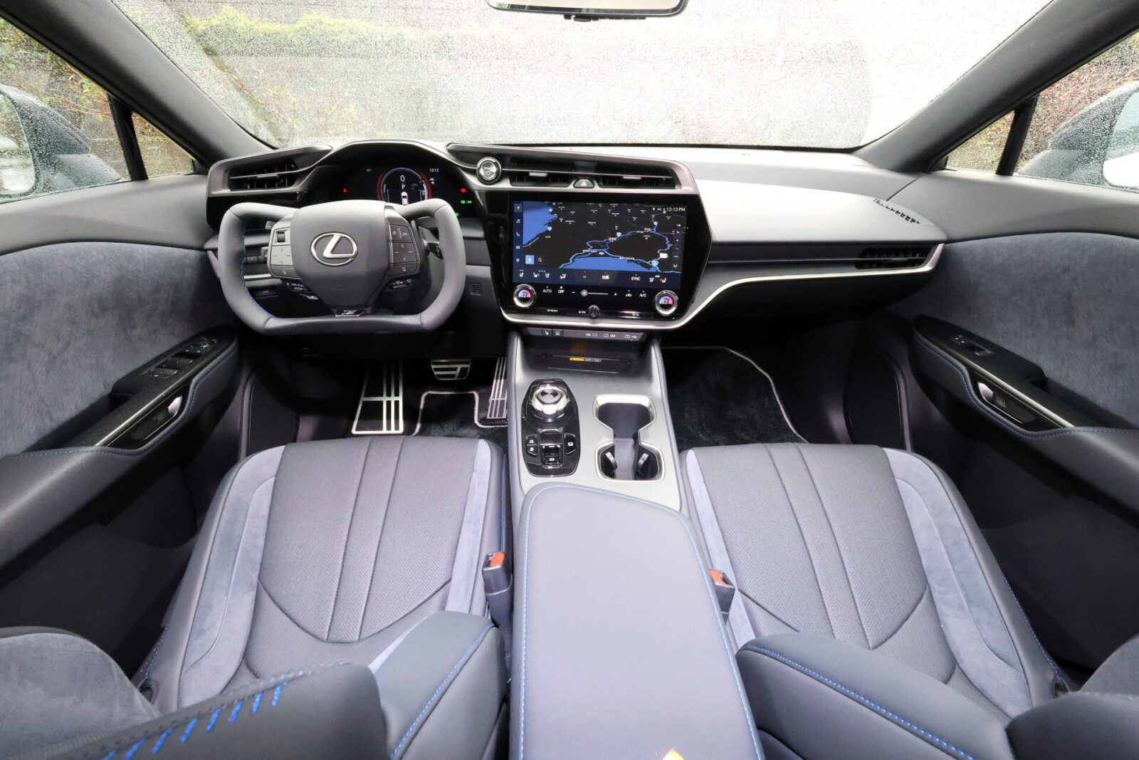 在配備部分同樣有所升級,以頂規RZ 550e F Sport車型而言,包括感應式電動尾門、全景式天窗(附霧化功能)、7吋數位儀錶、14吋多功能資訊整合系統、原廠中文衛星導航、真皮多功能方向盤(附加熱功能)、電動4向方向盤調整(附觸控追跡)、動能回充調節撥片、HUD抬頭顯示幕、64色室內環景LED燈光組、手機無線充電、數位車內後視鏡、Ultrasuede人造麂皮跑車化座椅、雙前座8向電動調整功能(附通風/加熱功能)、後座電熱座椅、雙區恆溫空調、Mark Levinson環繞音響+13具揚聲器、Apple CarPlay & Android Auto連結、ICS智慧停車輔助、AP自動停車輔助以及360度環景影像輔助系統皆為標配,當然還有規格完備的Level 2 LSS+ 3.0智動駕駛輔助系統,整個配備水準更勝以往。