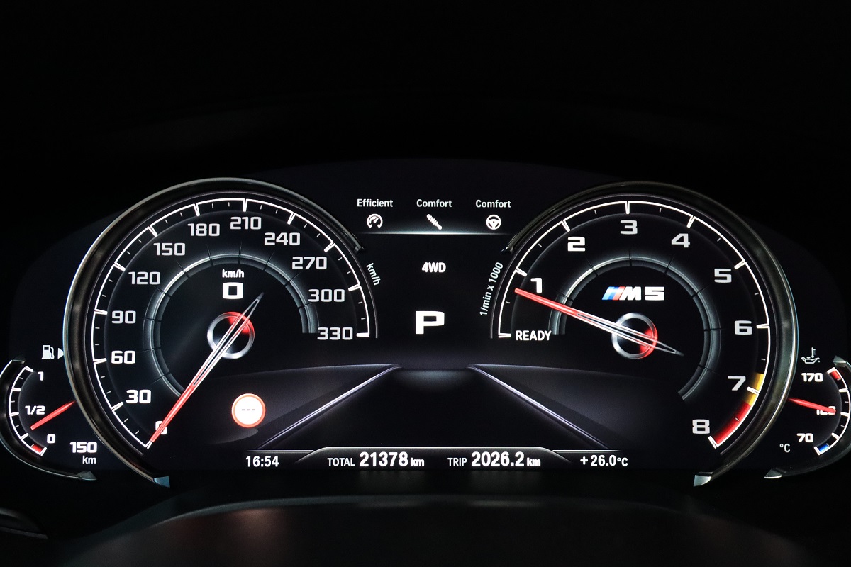 而受訪的這款F90世代的M5,是在2017年8正式發表的車款,所搭載的引擎為代號S63B44的4.4升V8雙渦輪增壓汽油引擎,這顆引擎也是從F10世代就開始沿用至今,目前也運用在X5M、X6M、M6、M8等BMW旗艦車款中,是一具出力相當強大的高性能引擎,搭載的變速箱為八速 M Steptronic手自排變速箱,最重要的是這代M5配有M xDrive四驅系統,具備3種模式可調,能在彎中提供絕佳循跡性,是除了X系列休旅車系(X5 M、X6 M)之外,首度搭載四驅系統的M Car。這套由 BMW性能化部門—M GmbH開發的M xDrive四驅系統,可視情況或駕駛模式調整前後軸動力分配,最極端狀態可固定在純後驅模式。