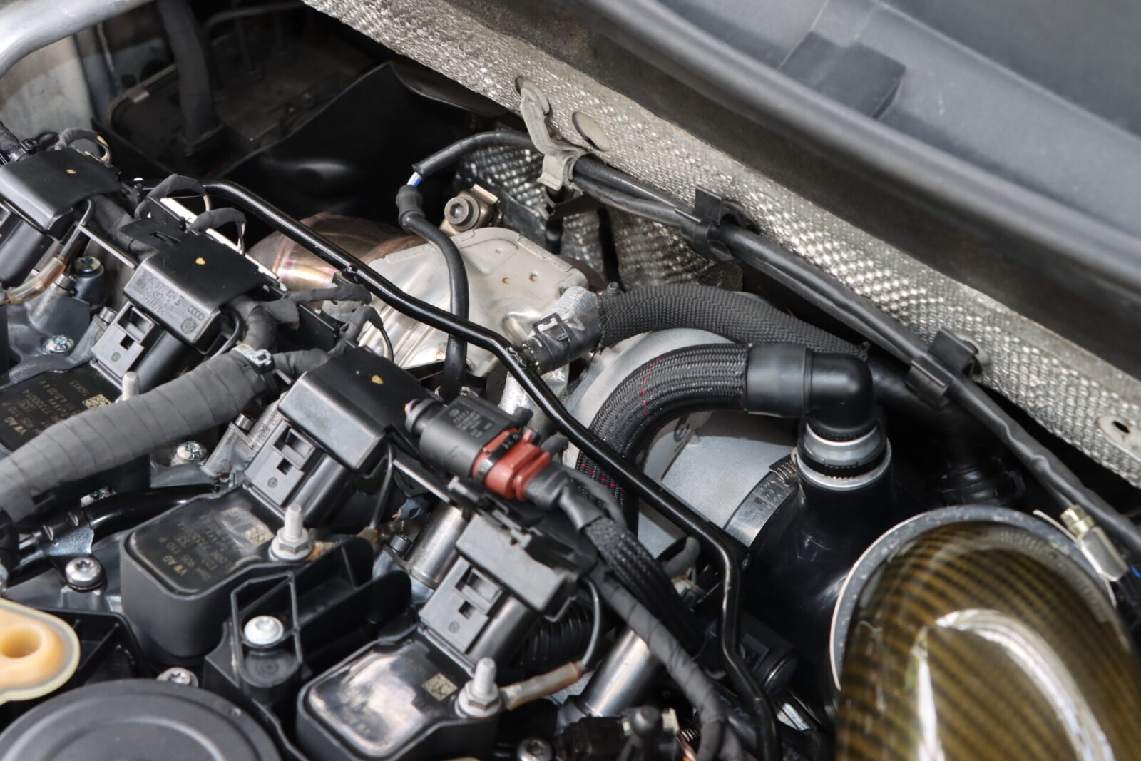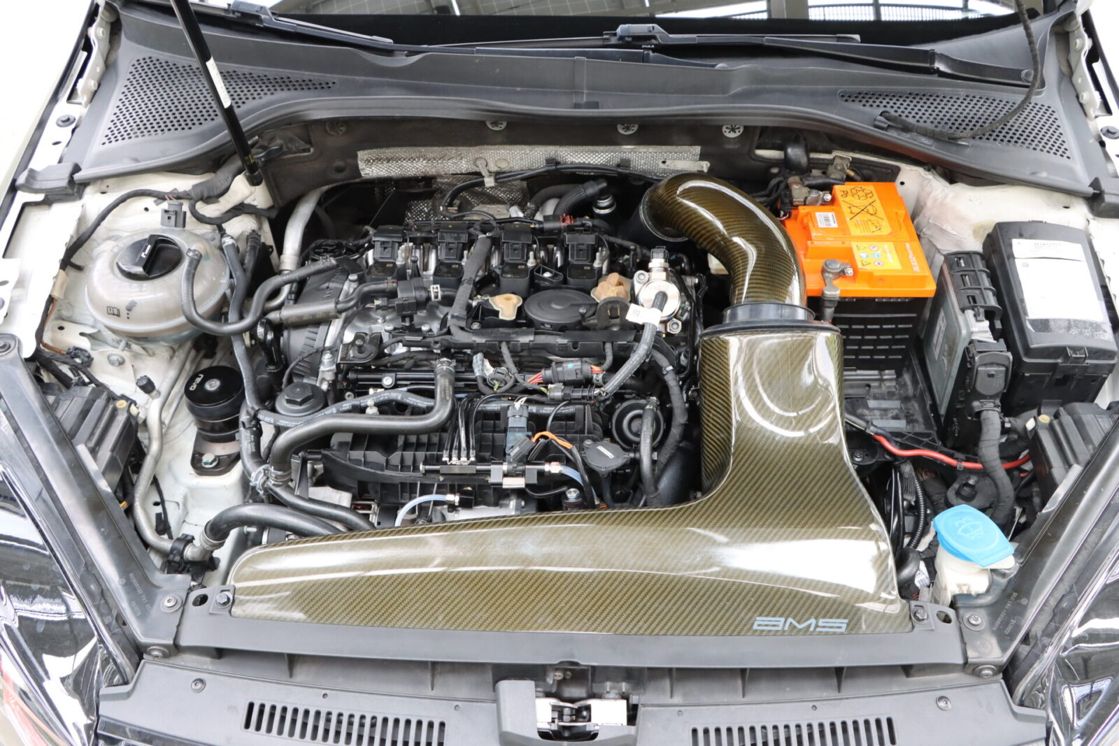 如果單論引擎腹內強度來說,不更換鍛造活塞+連桿的三階改造工程,也就是更換進排氣系統、高低壓汽油泵浦強化,更換Amaker 550S加大渦輪、單缸水噴射系統,搭配HS ECU電腦程式的調校,將原廠7代的0.9~1.1bar增壓值,提高到1.8~1.9bar的話,約可將最大輪馬提高到450~470hp,相較於Golf GTI 8來說,相同條件約少了30~50hp。