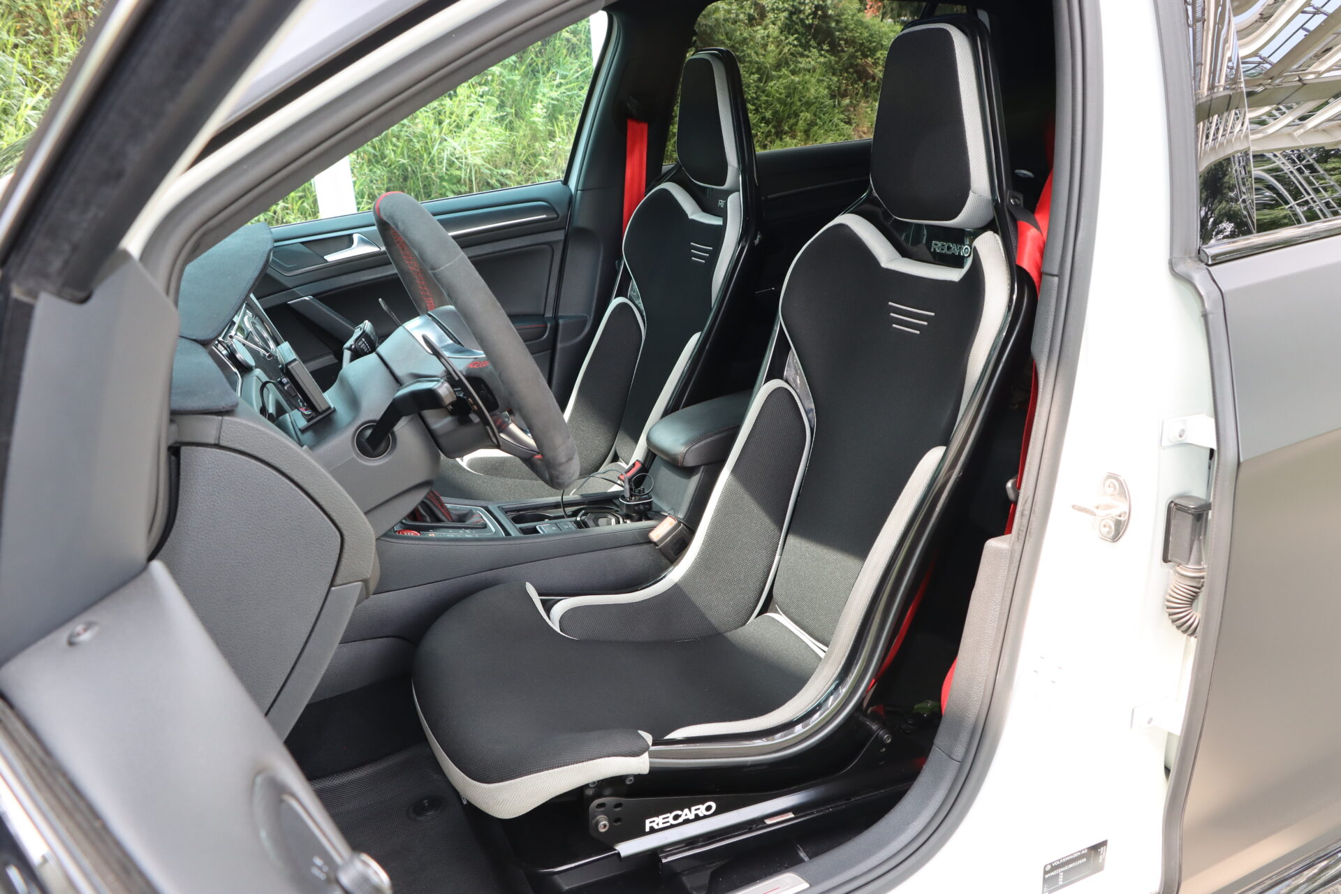 而受訪的這部Golf GTI 7.5代,由於是林木自動車早期用來挑戰紀錄用的,因此全車設定比較偏向賽車化,除了與GTI 8相似的四階改造之外,連S3排氣凸輪軸/排氣彈簧、WSPORT汽門鈦帽、WSPORT加大節氣門等都也更換,斷油轉速也從原本的6600rpm延後到7000rpm,使其最大輪馬突破573hp,在全車內裝輕量化,搭配熱熔胎的條件下,100-200km/h跑出5.75秒的成績。至於好不好開呢?林木自動車表示,由於整個動力曲線都往後延,因此低速扭力表現沒有很好,不適合當作街車使用,如果想比照辦理,可能要多想想。